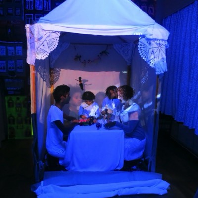 Theater Vonk speelt het verhaal van de buurt vòòr een blanco huis waar op gefilmd wordt. Els maakte een film van haar omgeving door te tonen wat er zich afspeelt achter de gordijnen. In het huis spelen kinderen van de buurt.